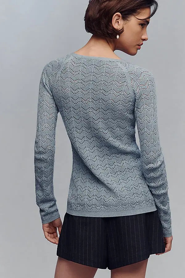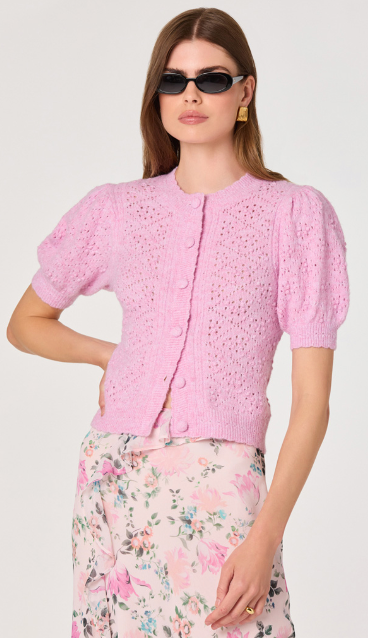 Pointelle Button-Up Knit Cardigan