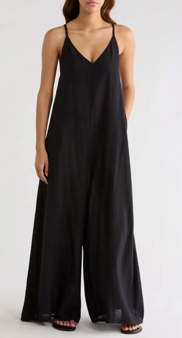 Wide Leg Cotton & Linen Blend Cover-Up Jumpsuit