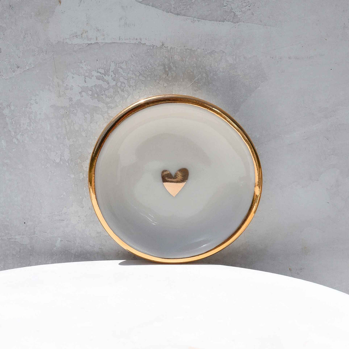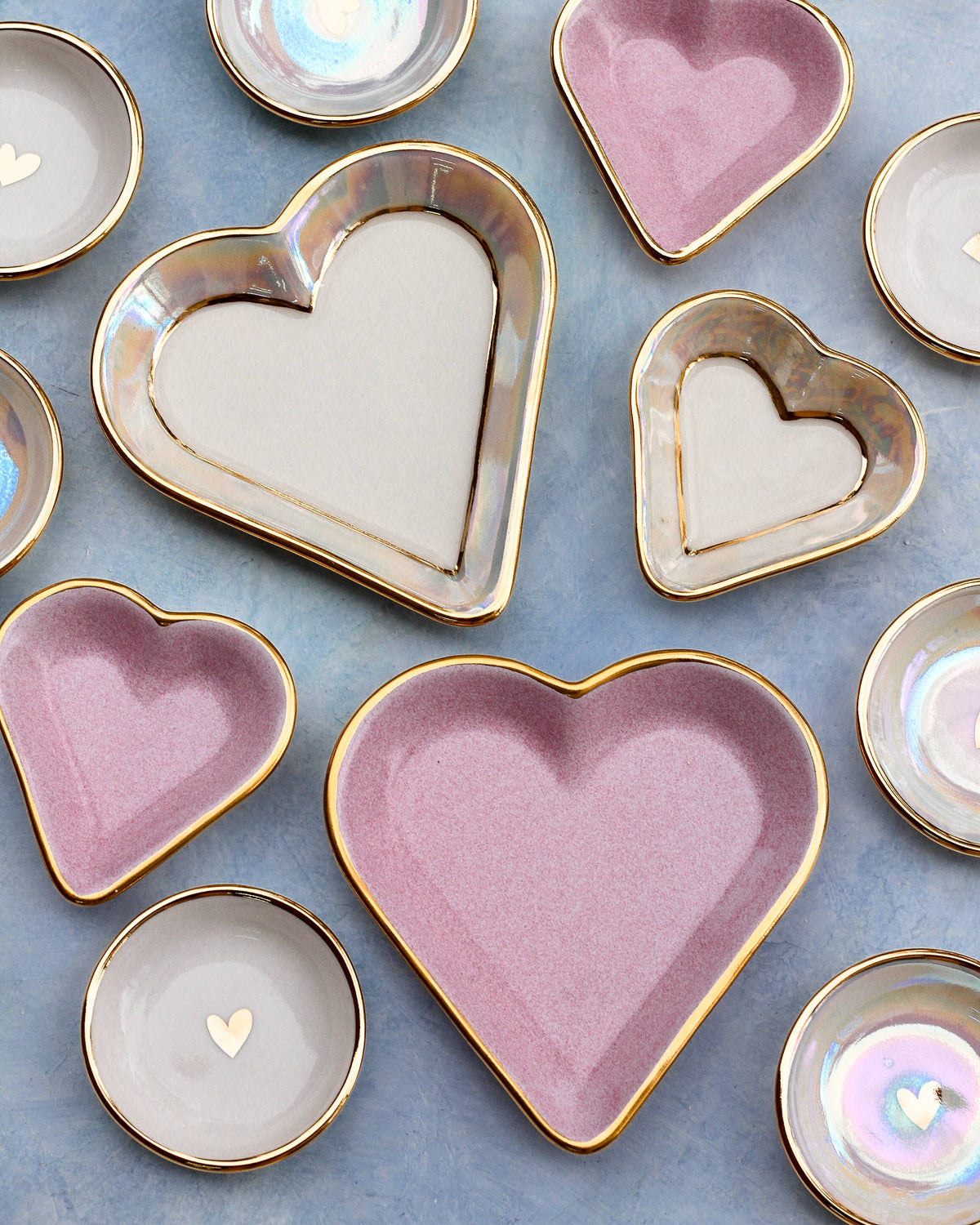 Iridescent Heart Ring Dish | Handmade Pottery with Gold