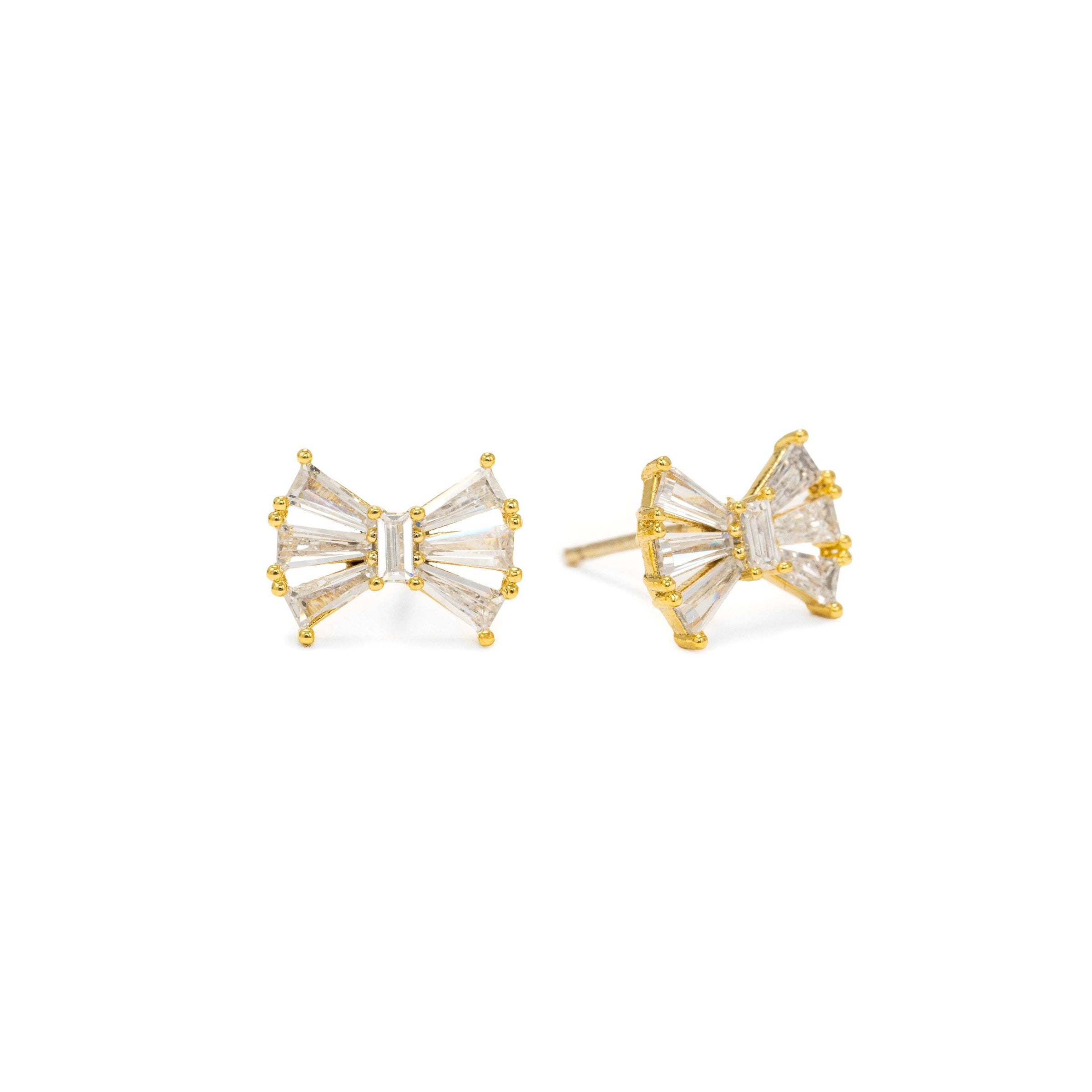 Tiny baguette crystals make up the sweetest bow. An unexpected adornment for any occasion.