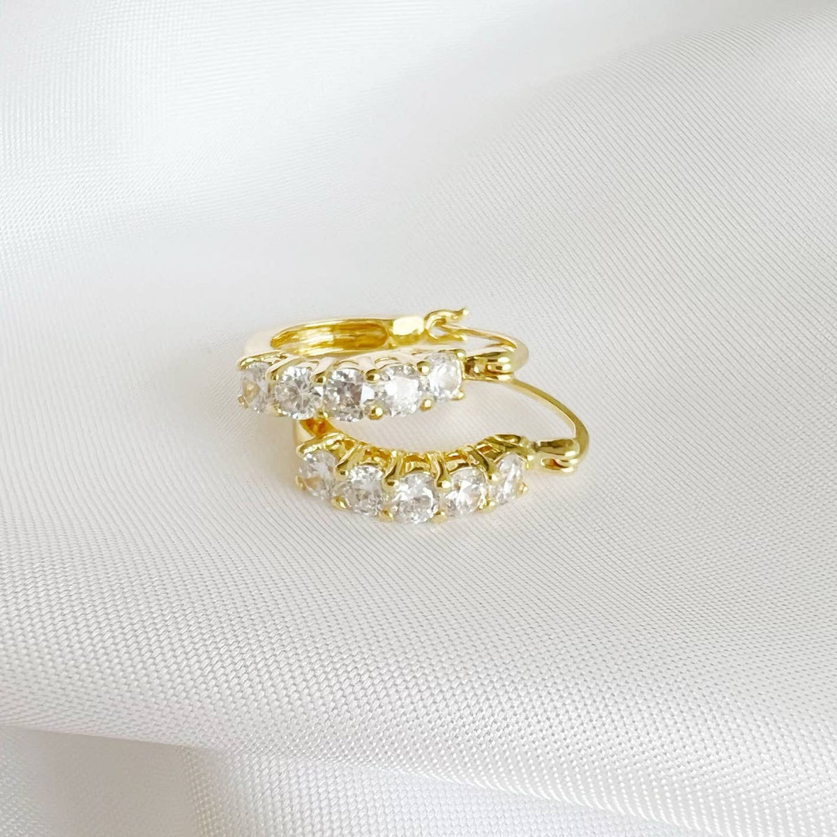 Glisten Pave Silver White Gold Filled Huggie Hoops Earrings