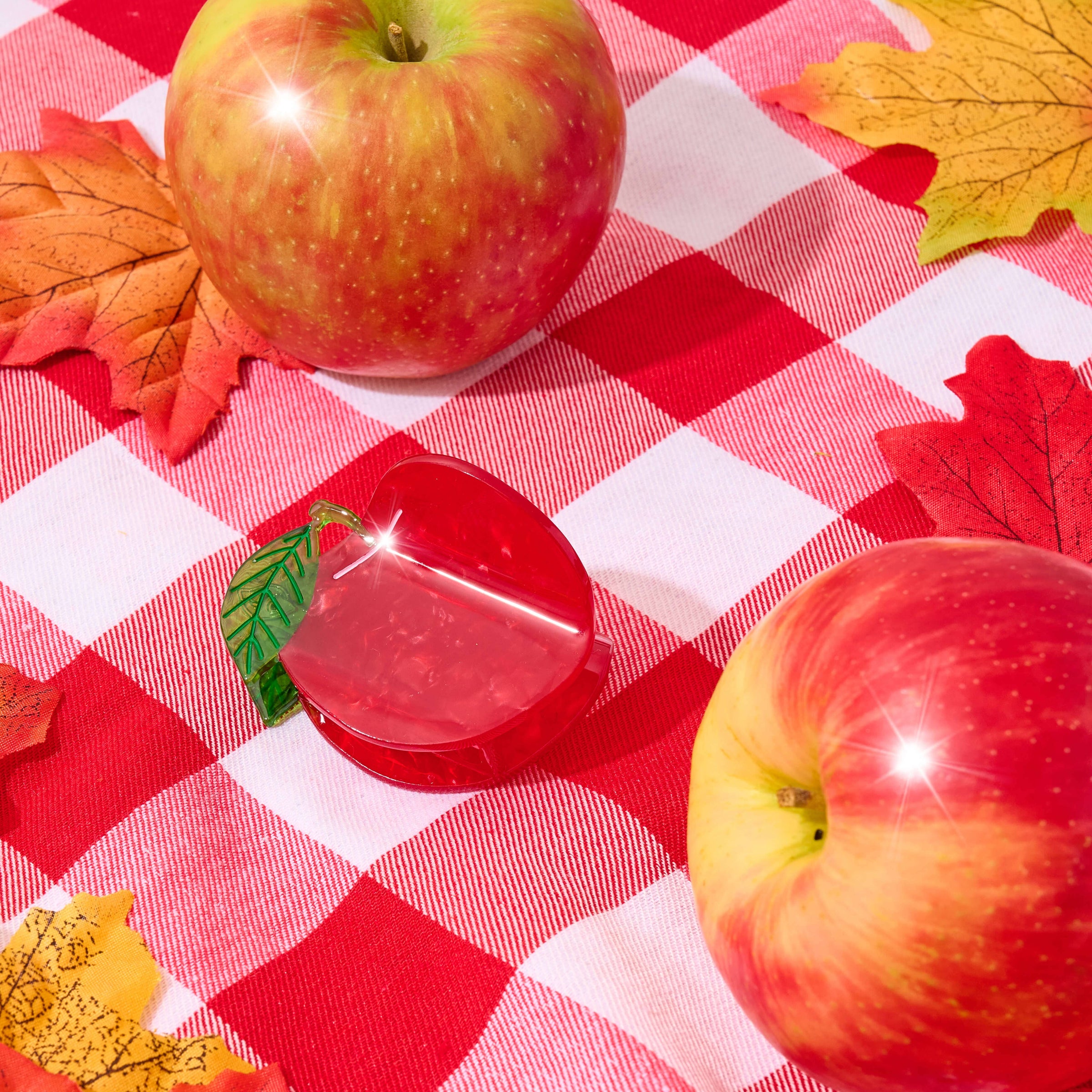 Our Midi Red Apple Hair Claw is crisp, cute, and ready to wear! At 2" x 2.25", this acetate clip is handmade and painted with vibrant apple details. Strong enough for daily use, it’s the perfect fruit hair accessory for autumn outfits, school days, and apple lovers everywhere. By Jenny Lemons.
